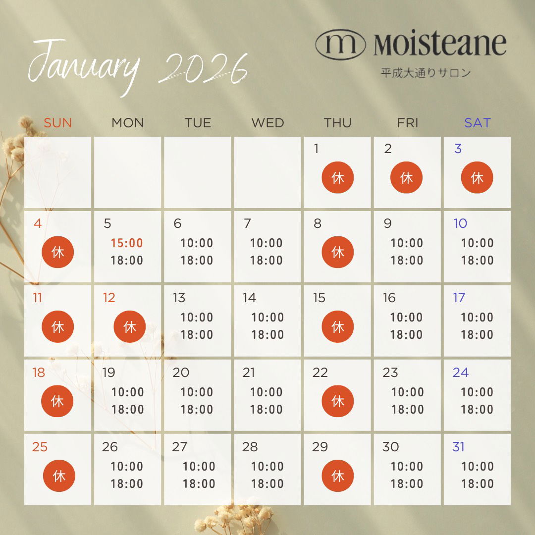 サロンは1月5日より通常営業しております。今年も皆様のご来店を心よりお待ちしております。